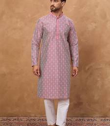 | Product Name | Men Pink Silk Blend Ethnic Motifs Printed Straight Kurta With Pant Set | |