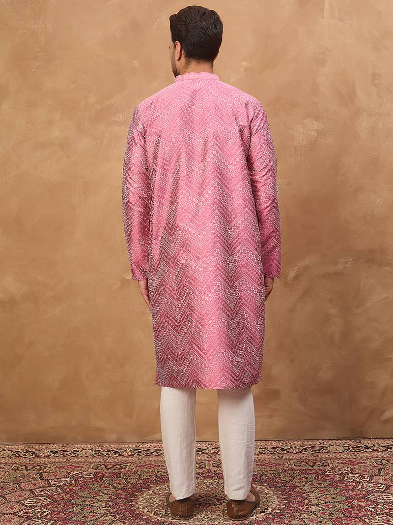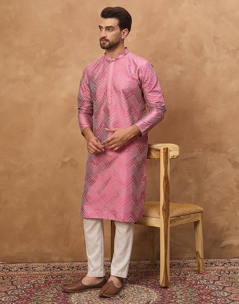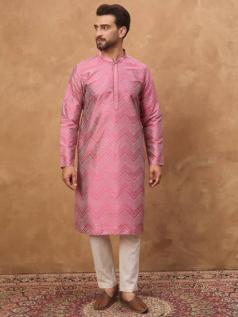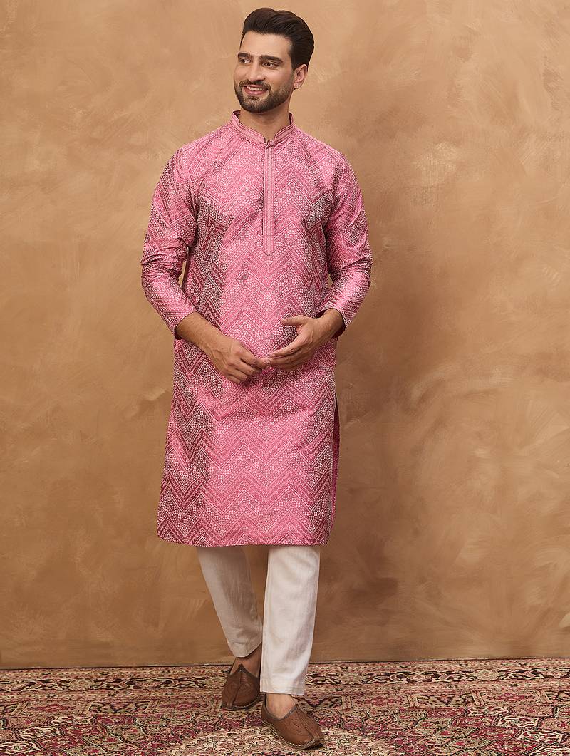 | Product Name | Men Pink Silk Blend Geometric Printed Straight Kurta | |
