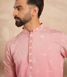 | Product Name | Men Pink Silk Blend Ombre Embroidered Straight Kurta Sets | |