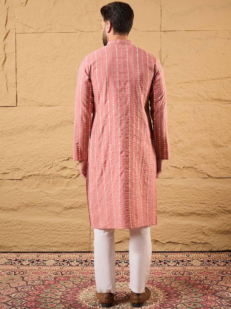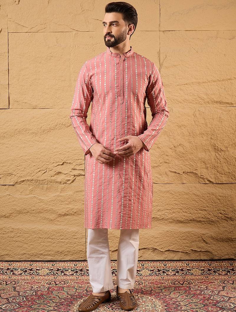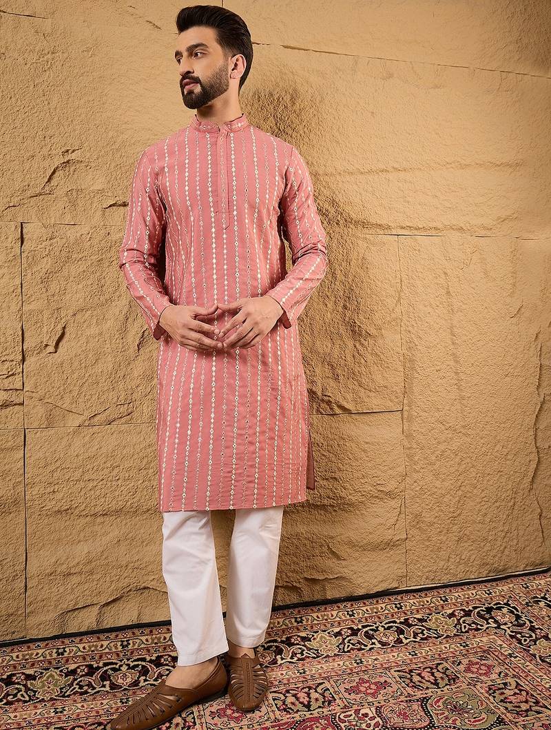 | Product Name | Men Pink Silk Blend Solid Embroidered Straight Kurta | |