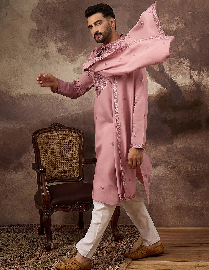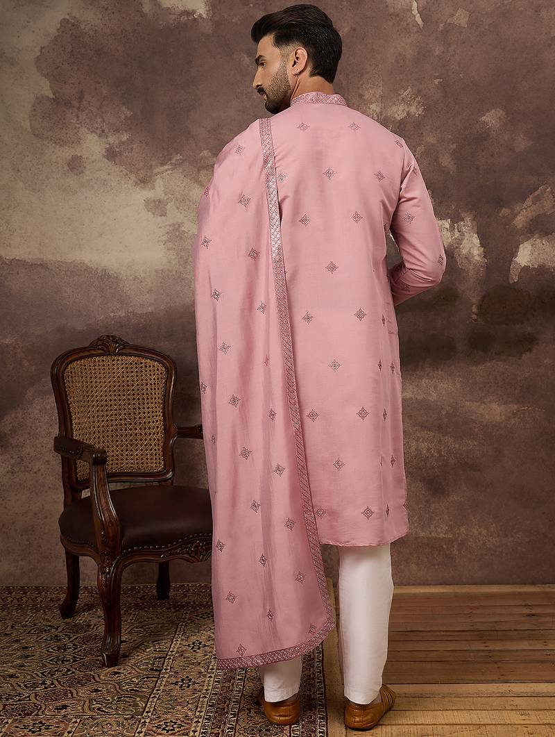 | Product Name | Men Pink Silk Blend Solid Embroidered Straight Kurta With Dupatta | |