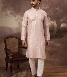 | Product Name | Men Pink Silk Blend Solid Embroidered Straight Kurta With Pant Set | |
