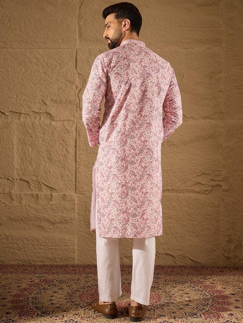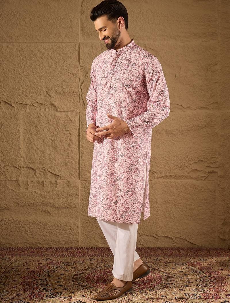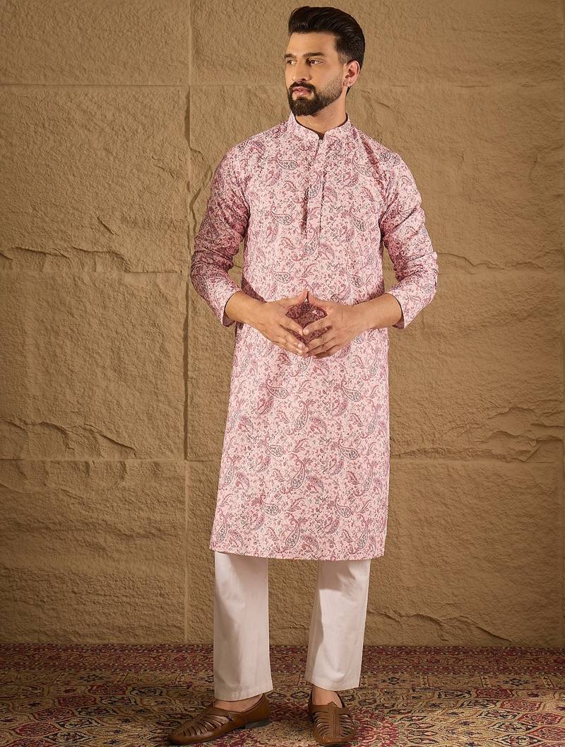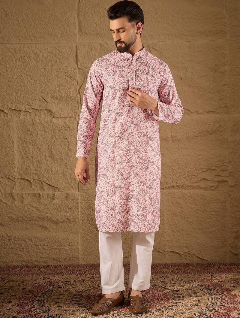 | Product Name | Men Pink Viscose Rayon Ethnic Motifs Embroidered Straight Kurta | |