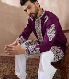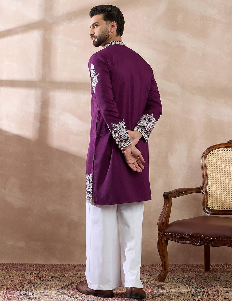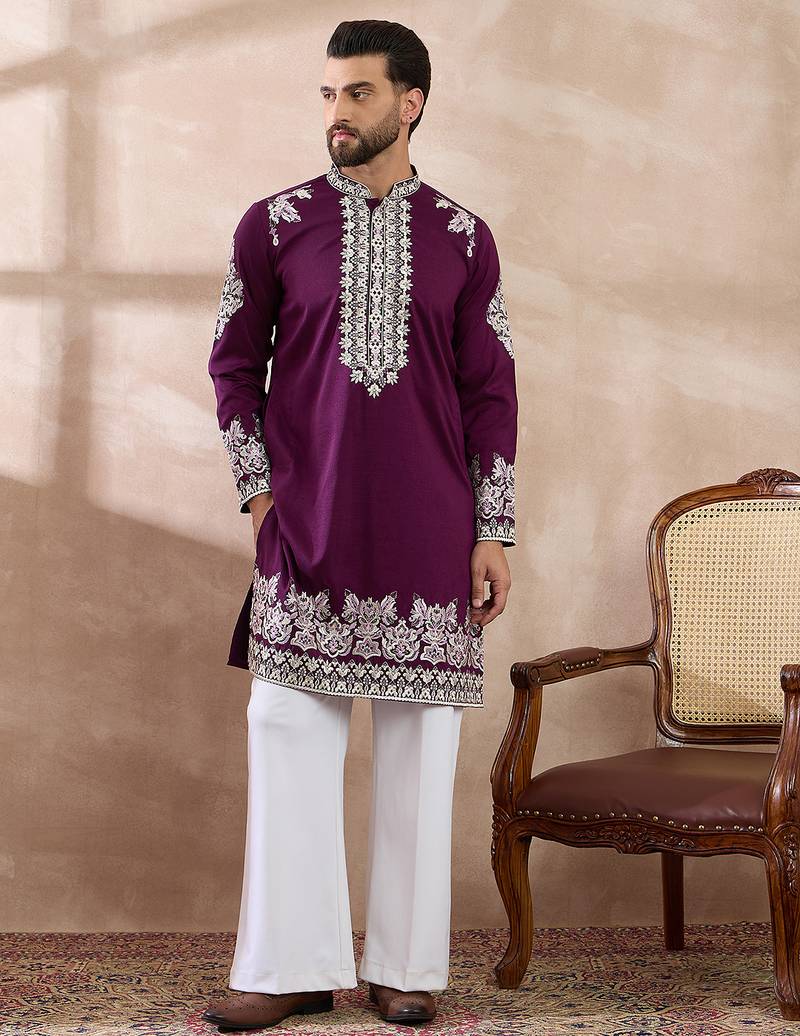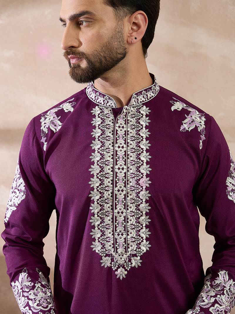 | Product Name | Men Purple Silk Blend Embroidered Mandarin Collar Straight Kurta | |
