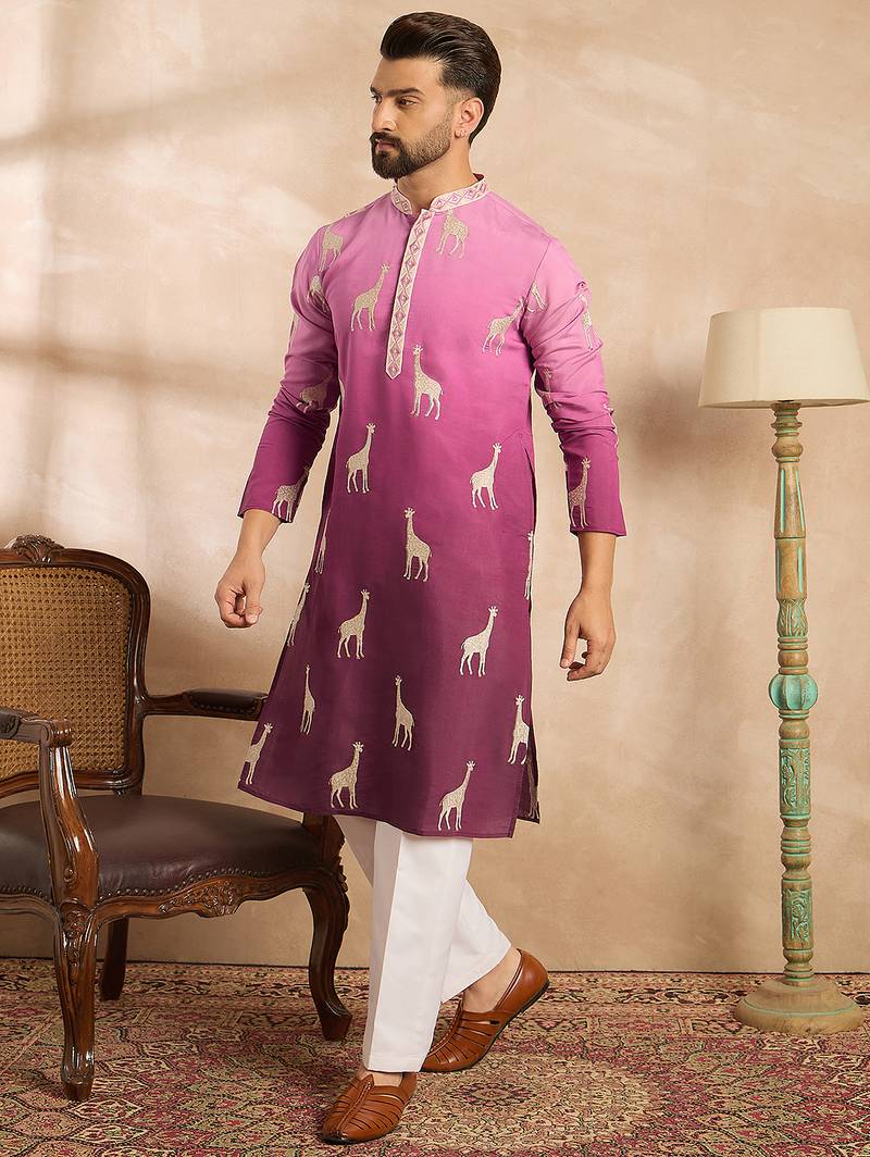 | Product Name | Men Purple Silk Blend Ombre Embroidered Straight Kurta | |