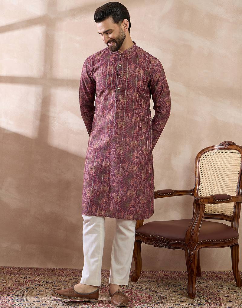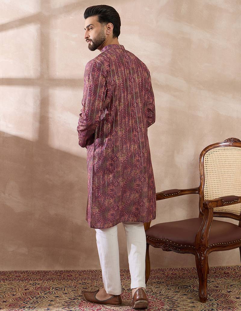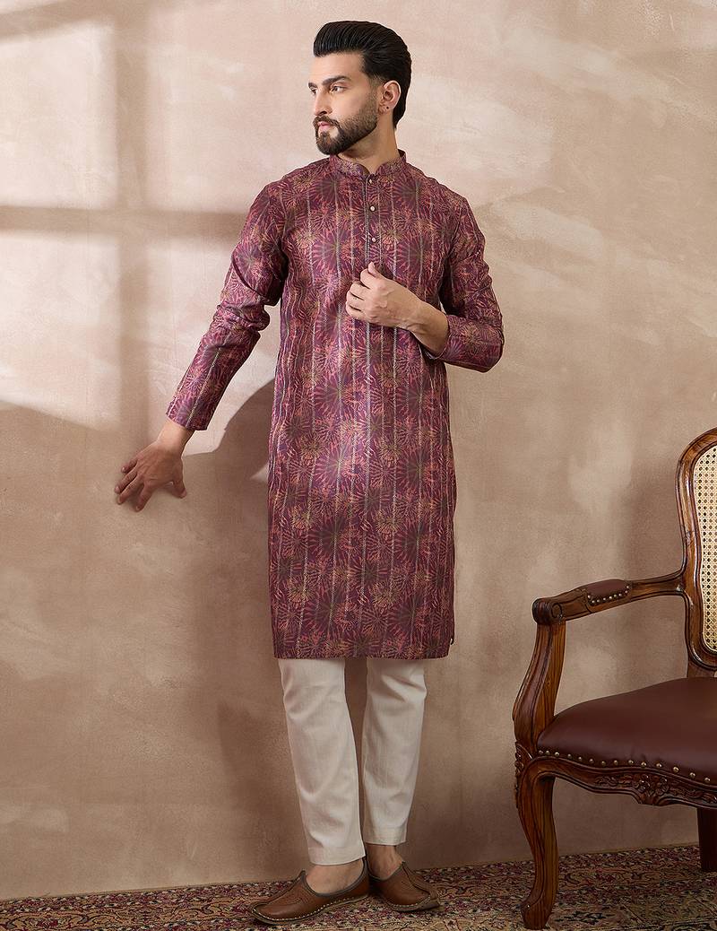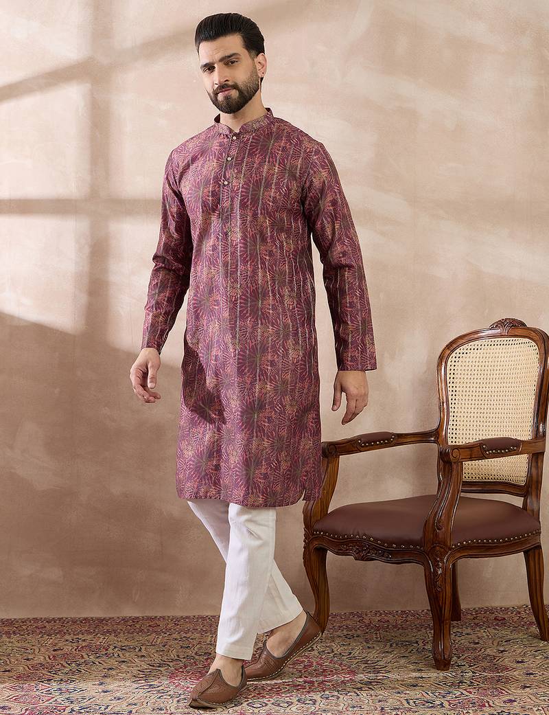 | Product Name | Men Purple Silk Blend Printed Mandarin Collar Straight Kurta With Trouser | |