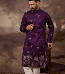 | Product Name | Men Purple Silk Blend Solid Embroidered Straight Kurta | |