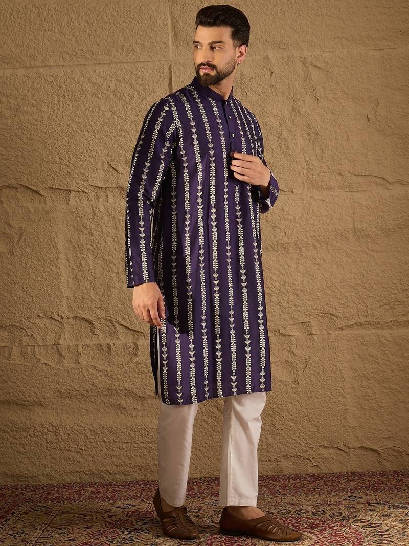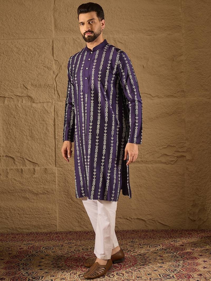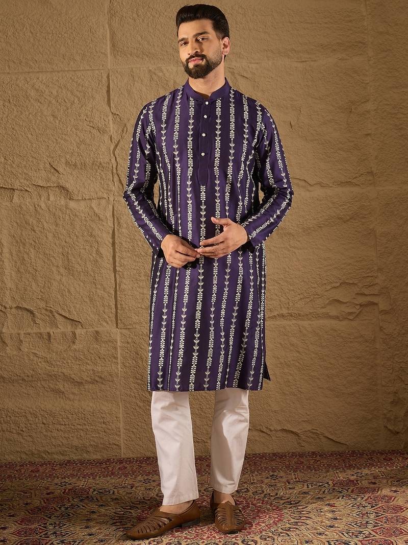 | Product Name | Men Purple Viscose Rayon Ethnic Motifs Printed Straight Kurta | |