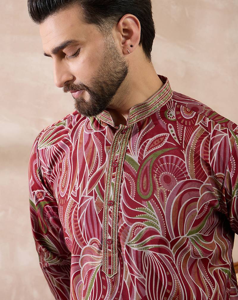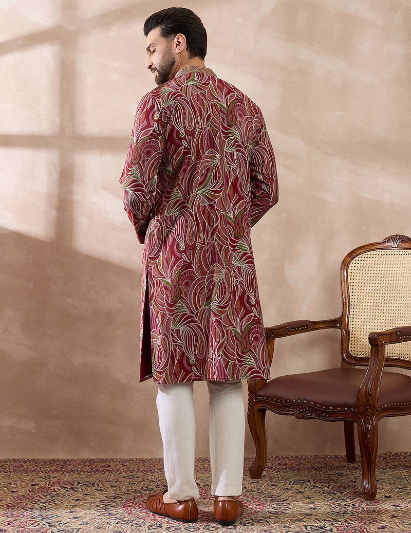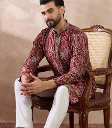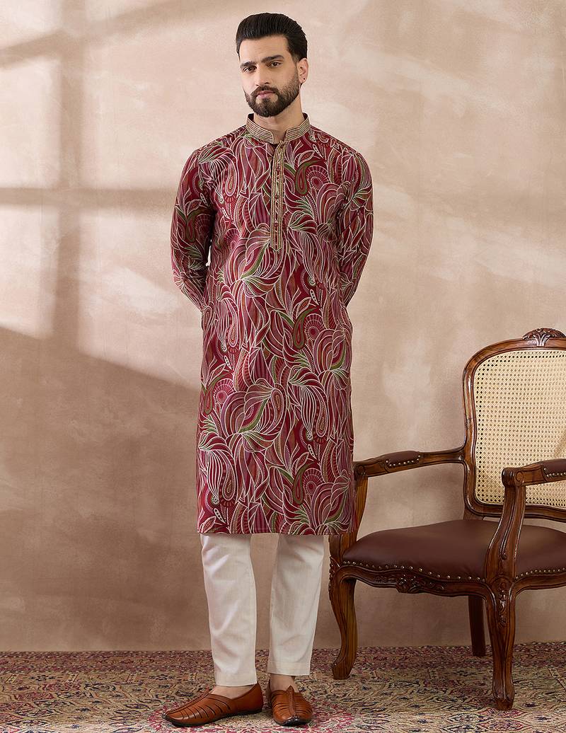 | Product Name | Men Red Silk Blend Printed Mandarin Collar Straight Kurta | |