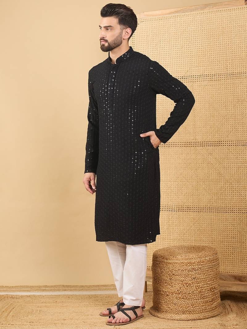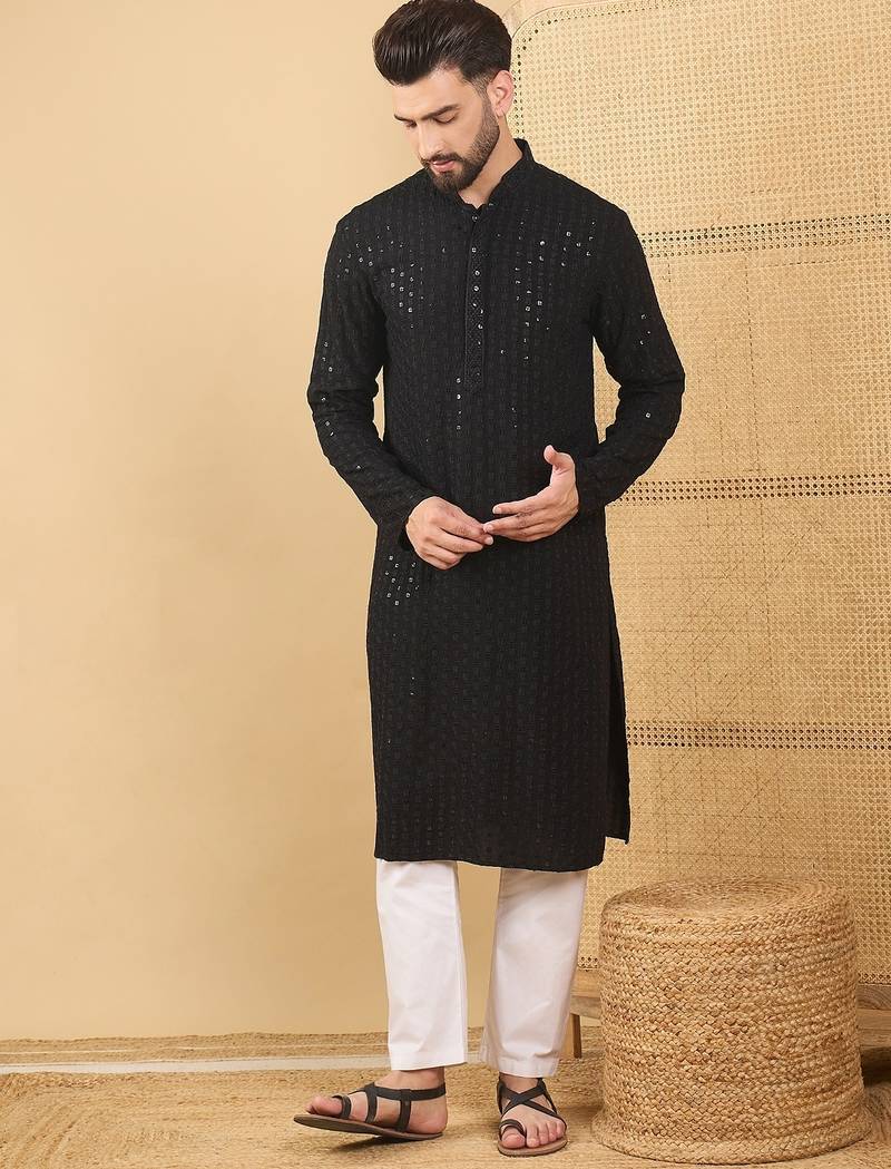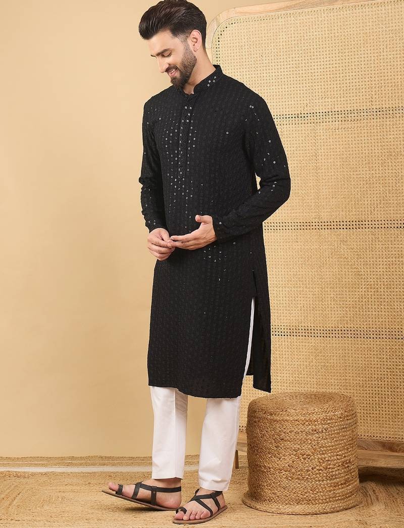 | Product Name | Men's Black Viscose Rayon Solid Embroidered Straight Chikankari Kurta | |
