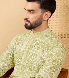 | Product Name | Men's Olive Viscose Rayon Geometric Embroidered Straight Chikankari Kurta | |