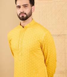 | Product Name | Men's Yellow Viscose Rayon Solid Embroidered Straight Chikankari Kurta | |
