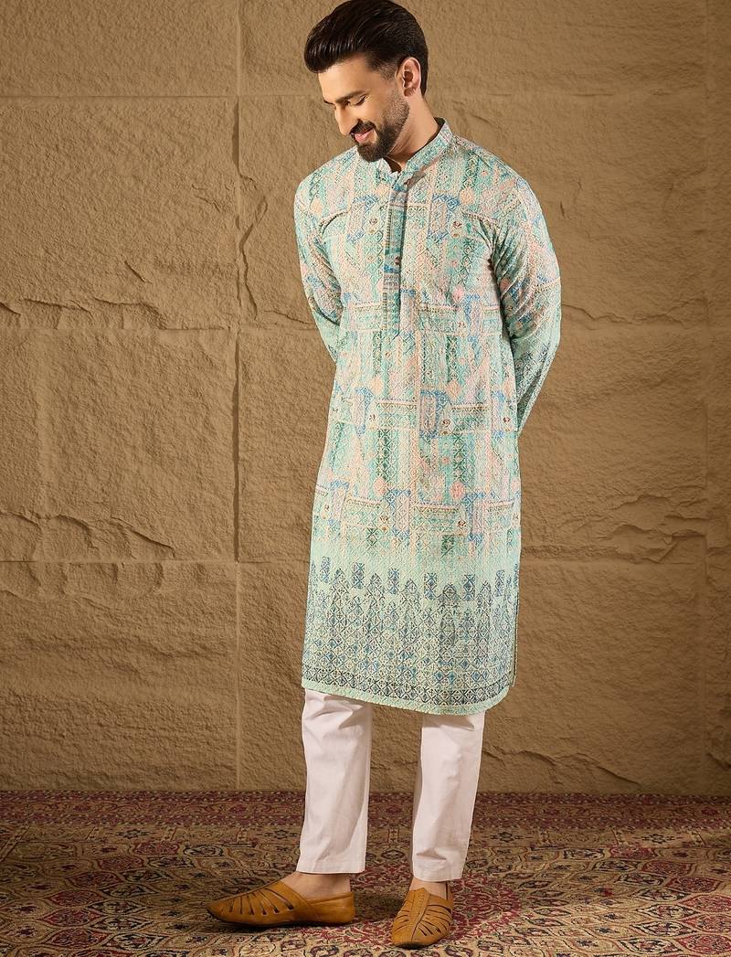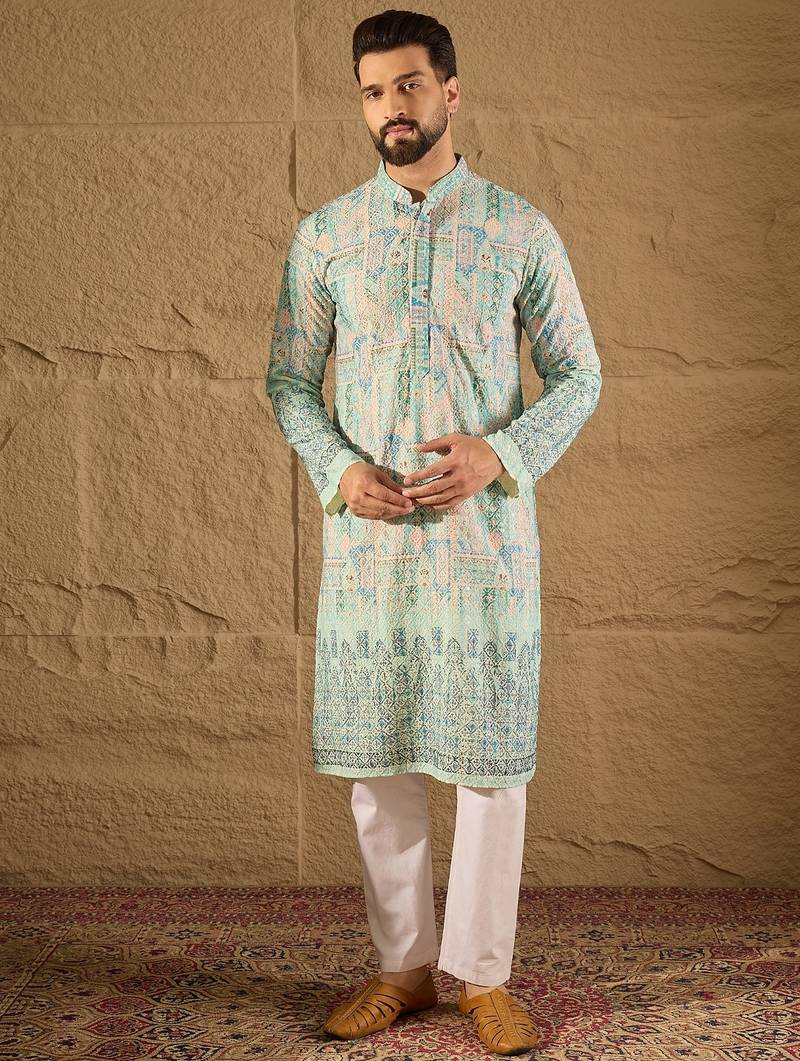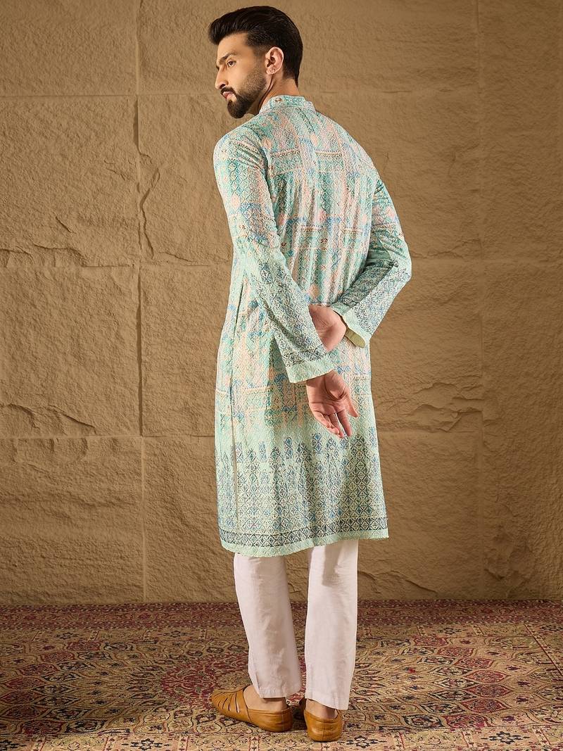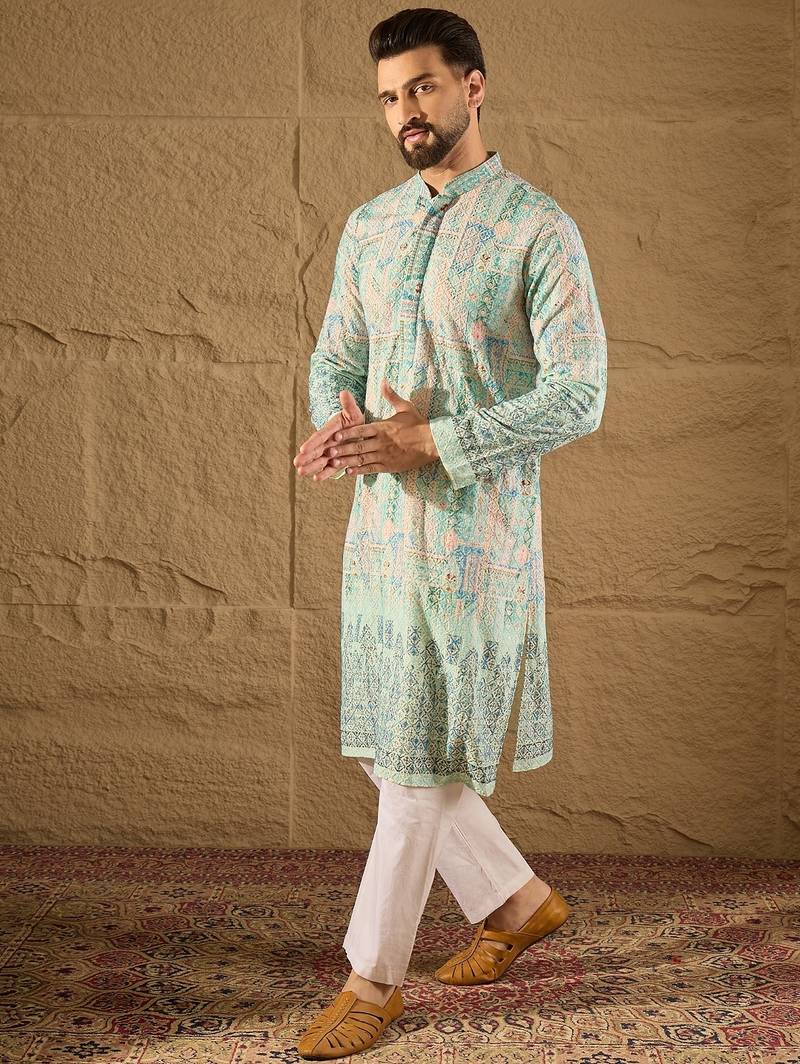 | Product Name | Men Sea Green Viscose Rayon Abstract Embroidered Straight Kurta | |