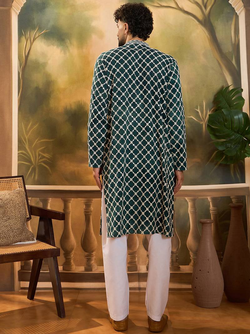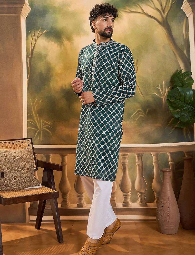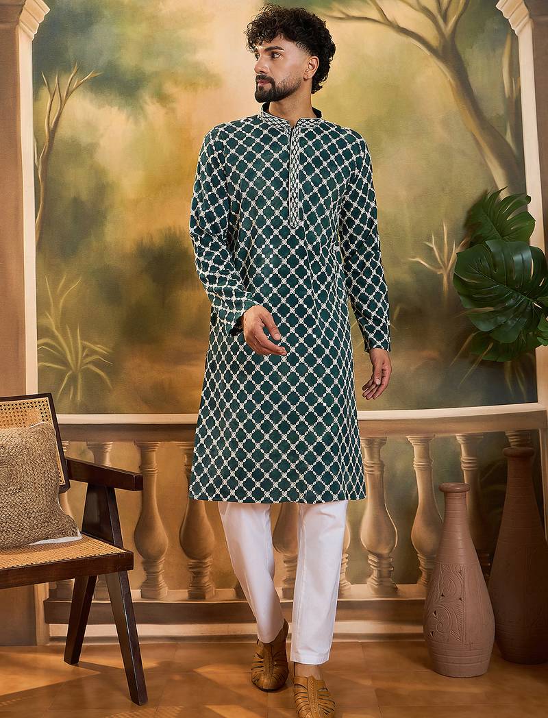 | Product Name | Men Teal Viscose Rayon Shibori Embroidered Straight Kurta | |