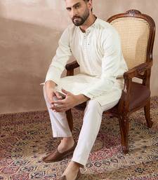 | Product Name | Men White Silk Blend Embroidered Mandarin Collar Straight Kurta With Trouser | |