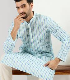 Men white viscose rayon striped printed straight kurta
