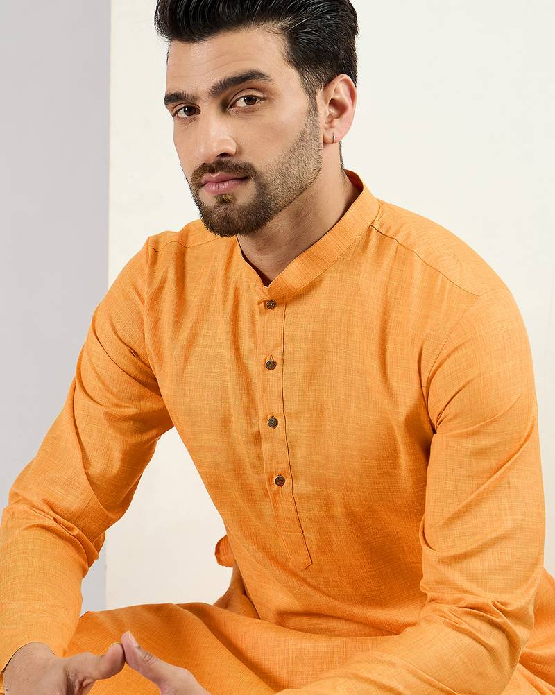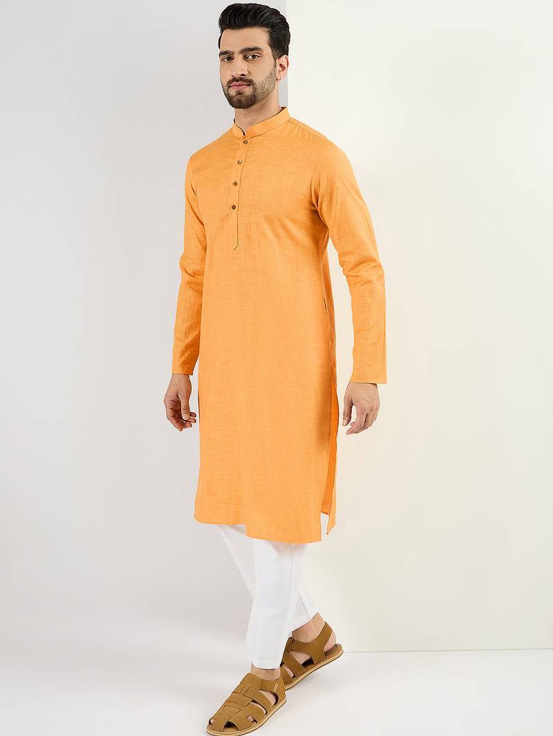 | Product Name | Men Yellow Cotton Solid Woven Design Straight Kurta | |