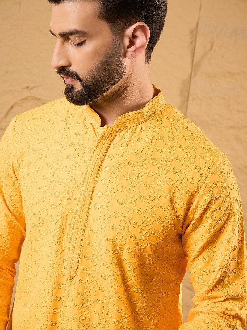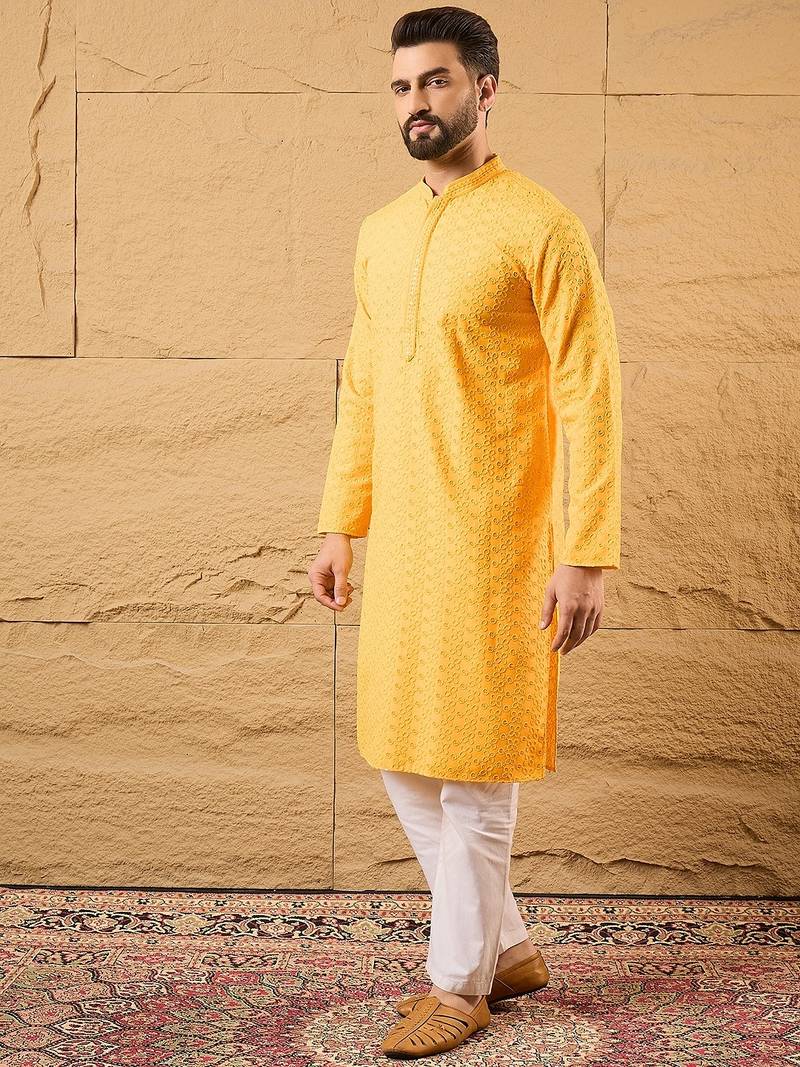 | Product Name | Men Yellow Silk Blend Embroidered Chikankari Straight Kurta | |