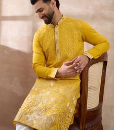 | Product Name | Men Yellow Silk Blend Embroidered Mandarin Collar Straight Kurta | |