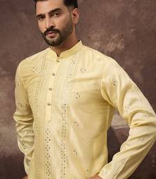 | Product Name | Men Yellow Silk Blend Solid Embroidered Straight Kurta | |