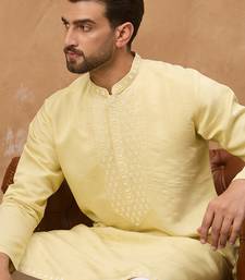| Product Name | Men Yellow Silk Blend Solid Embroidered Straight Kurta | |