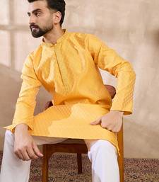 | Product Name | Men Yellow Silk Blend Solid Embroidered Straight Kurta With Trouser | |