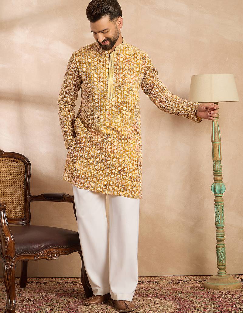 | Product Name | Men Yellow Viscose Rayon Batik Embroidered Straight Kurta | |
