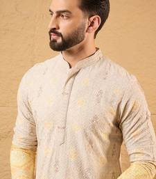 Men yellow viscose rayon ethnic motifs embroidered straight kurta