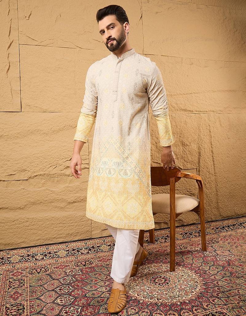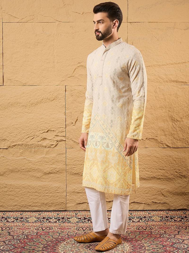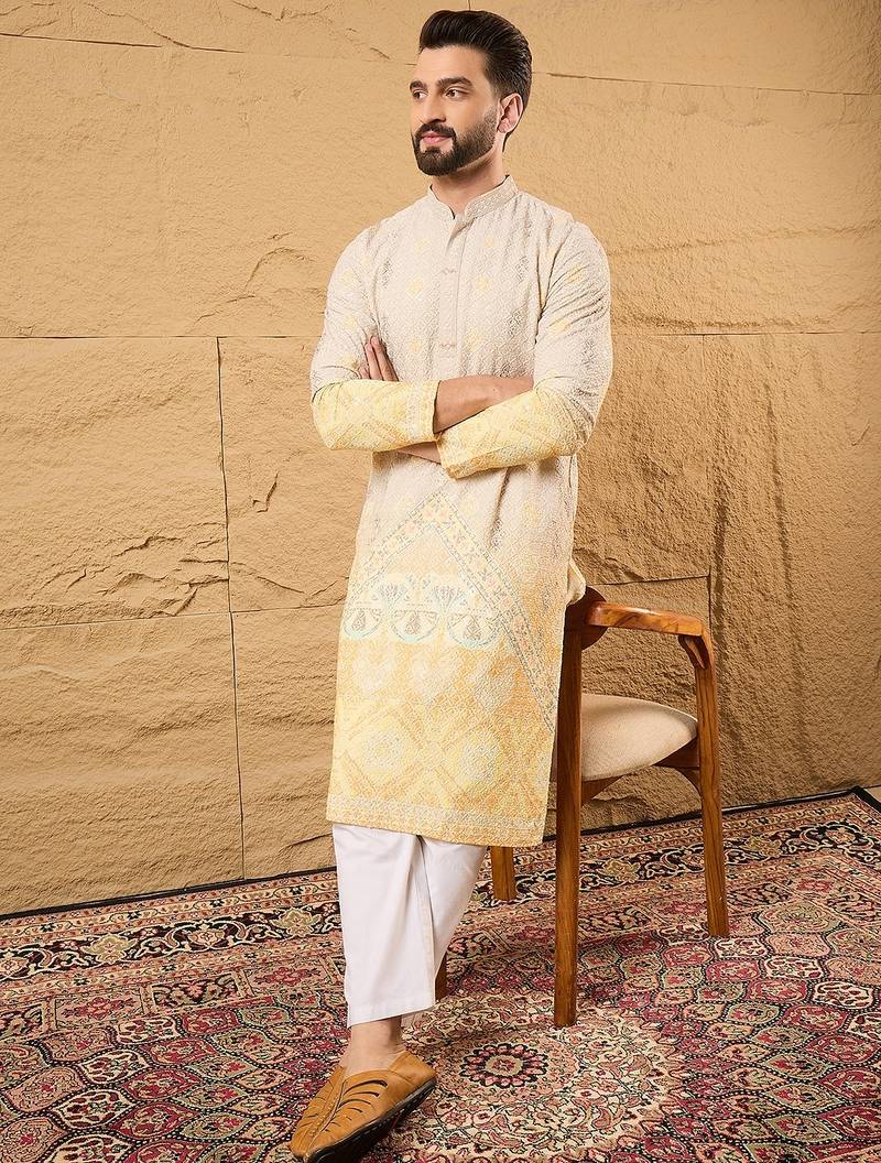 | Product Name | Men Yellow Viscose Rayon Ethnic Motifs Embroidered Straight Kurta | |
