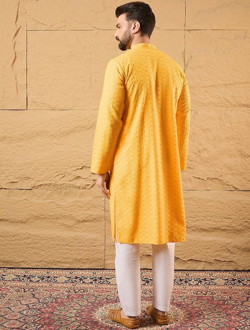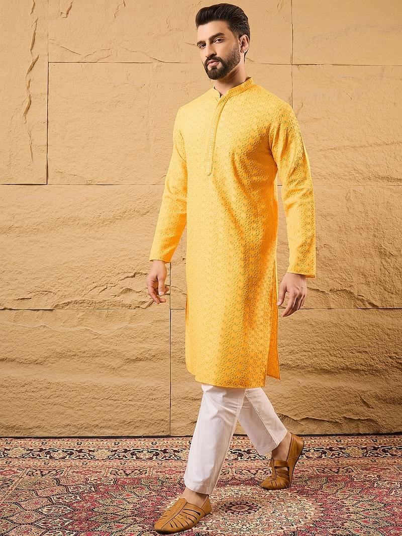 | Product Name | Men Yellow Viscose Rayon Solid Embroidered Straight Kurta With Trouser | |
