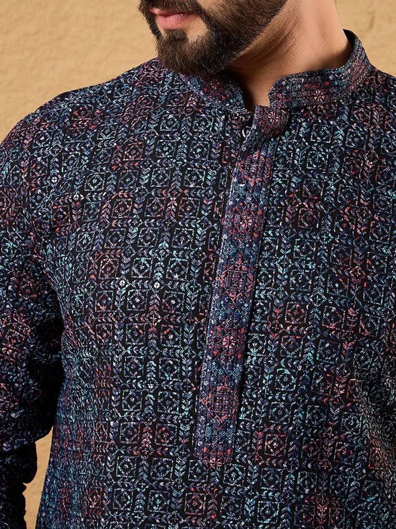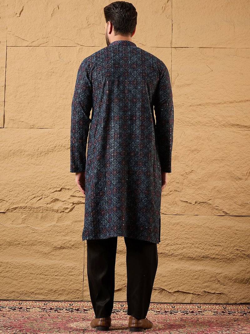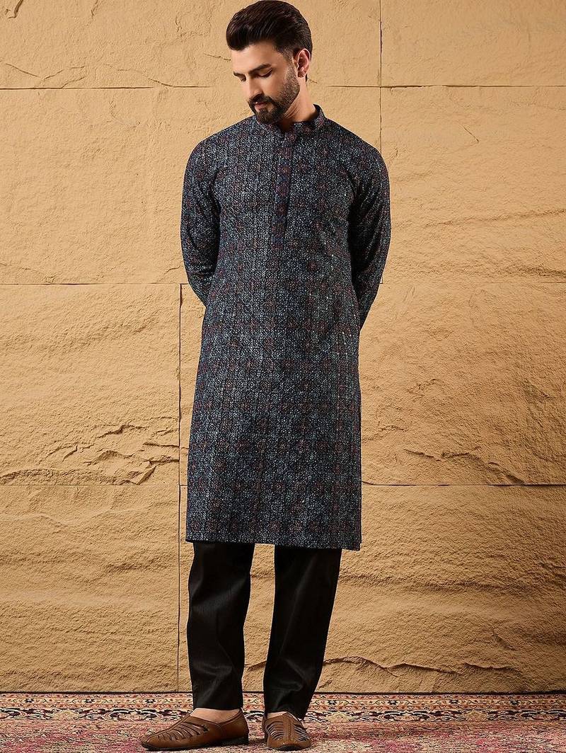 | Product Name | Mens Blue Viscose Rayon Abstract Embroidered Chikankari Straight Kurta With Pant Set | |