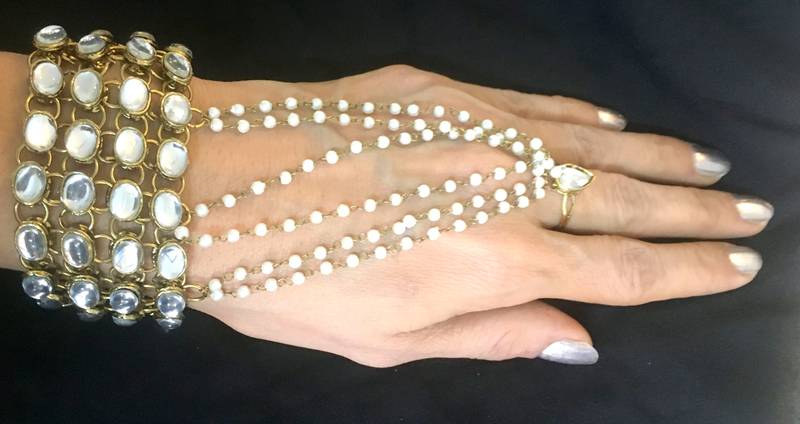 | Product Description | Single Haath Ring Phool Panja Gold Plated Kundan Pearl, Adjustable Size |