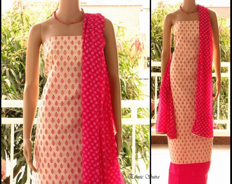 | Product Description | Onw This Simple And Cute White And Pink Suit Which Is Easy To Use And Easy To Maintain. Dont Miss The Pretty Chiffon Printed Dupatta |