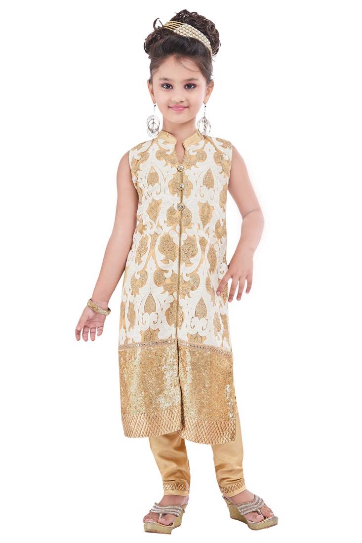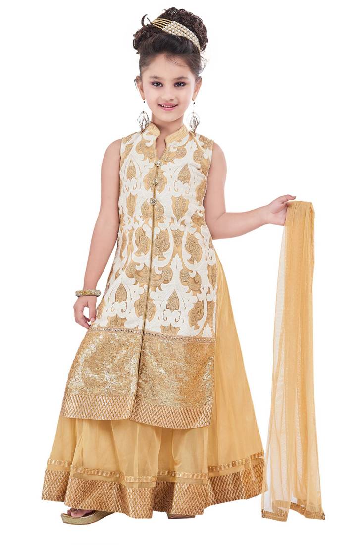 | Product Name | Cream Embroidery And Print Dupion With Netted Fabric Mastani Dress Kids Girls | |