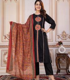 Cotton cambric printed a-line kurti-pant-dupatta set