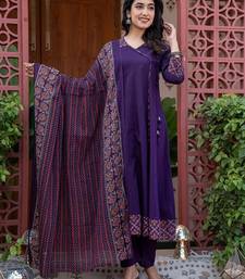 Cotton cambric printed anarkali kurti-pant-dupatta set