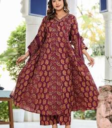 Cotton cambric printed full flared anarkali kurti-pant-dupatta set