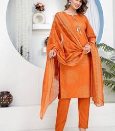 Cotton cambric straight kurti-pant-dupatta set