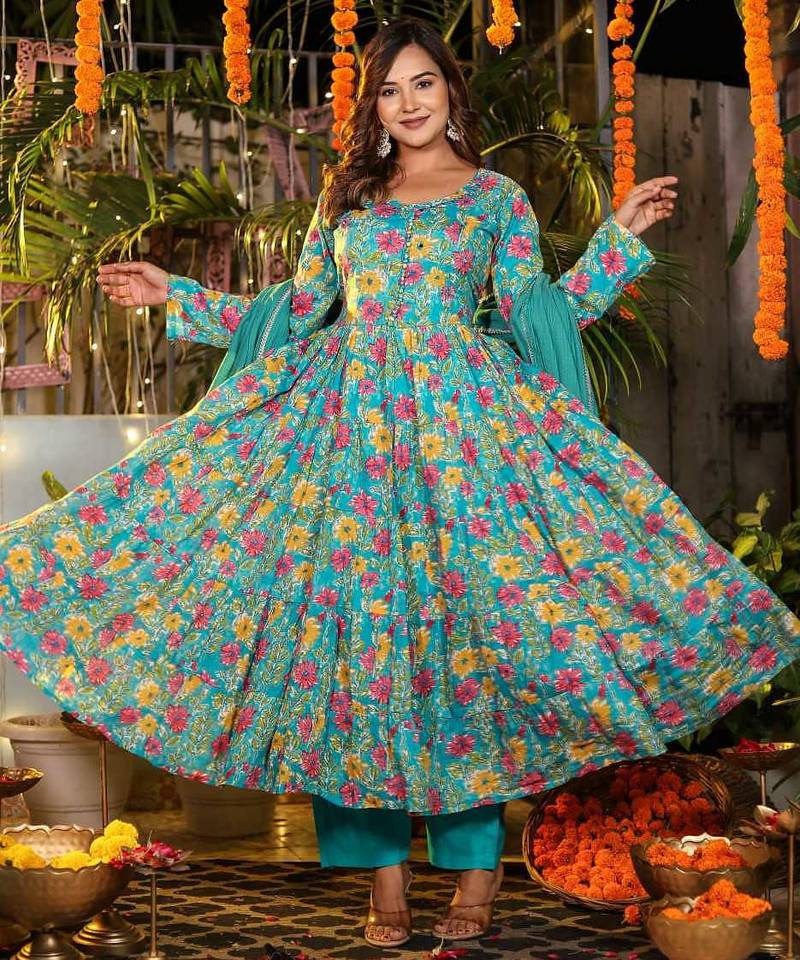 Product Name | Cotton Mulmul Full Flare Anarkali Kurti Pant Dupatta Set | |