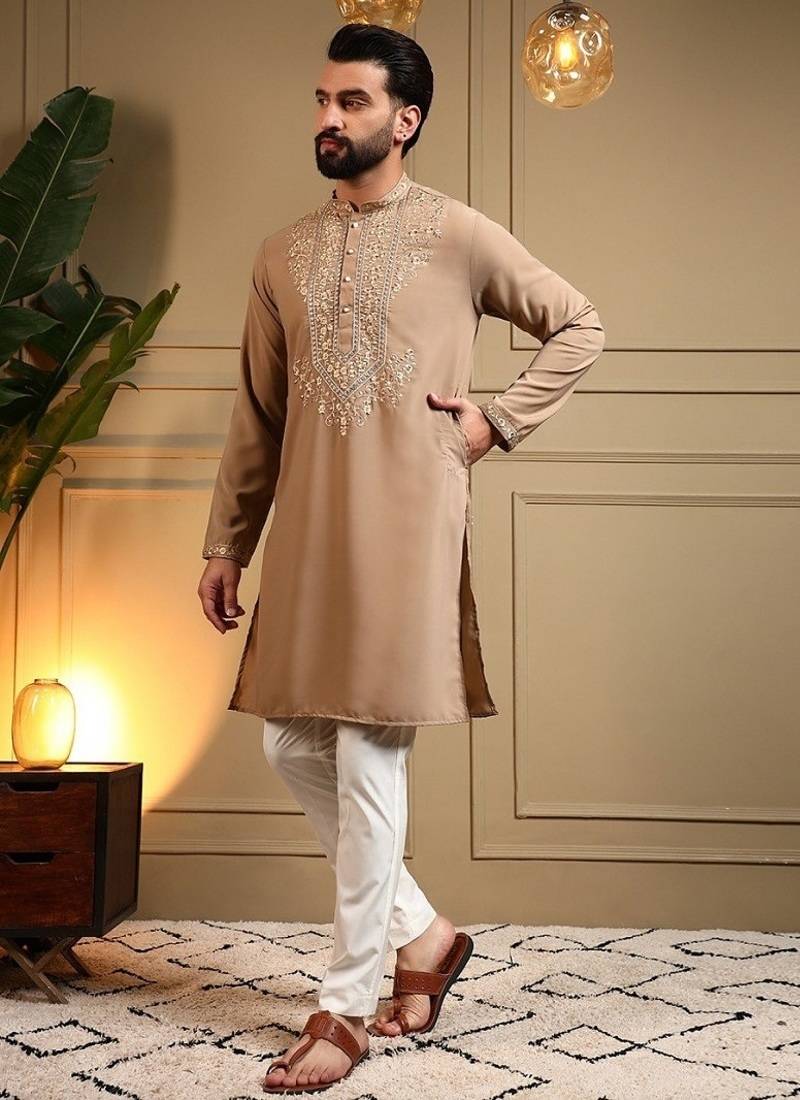 | Product Name | Beige Silk Blend Embroidered Work Kurta Payjama Wedding & Festive Wear | |