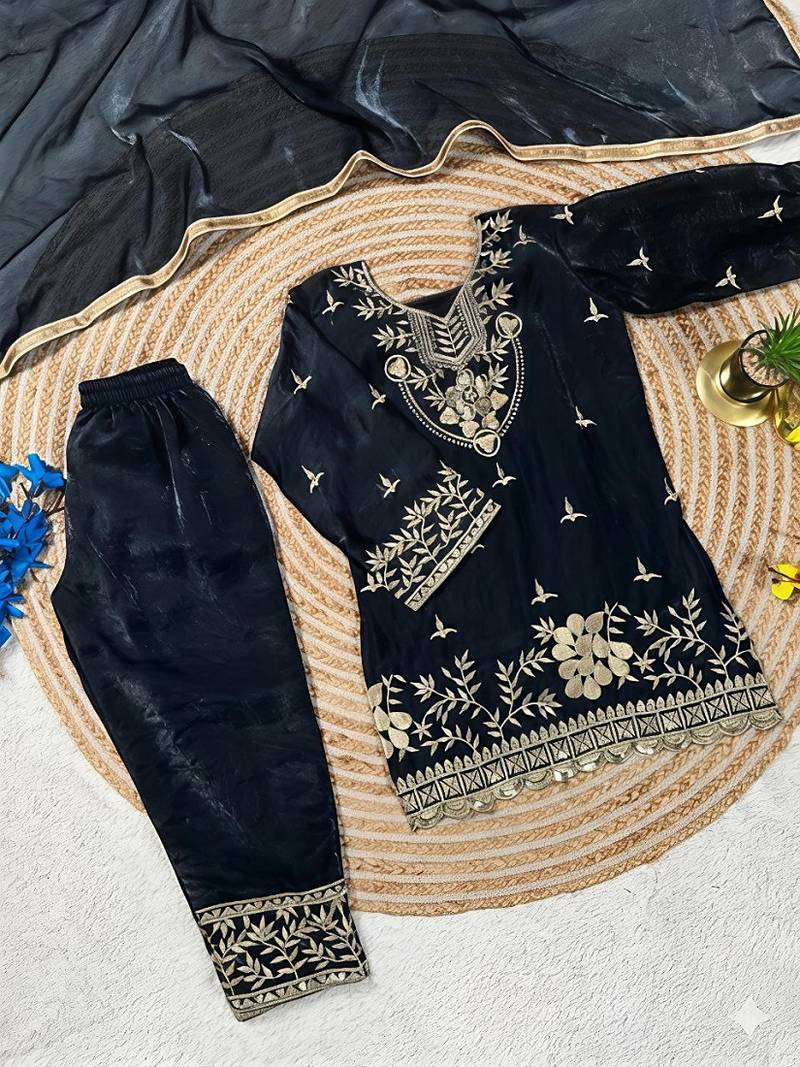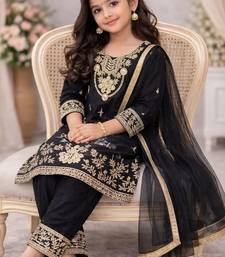 | Product Name | Black Silk Blend Embroidered Kids Top Salwar & Dupatta | |
