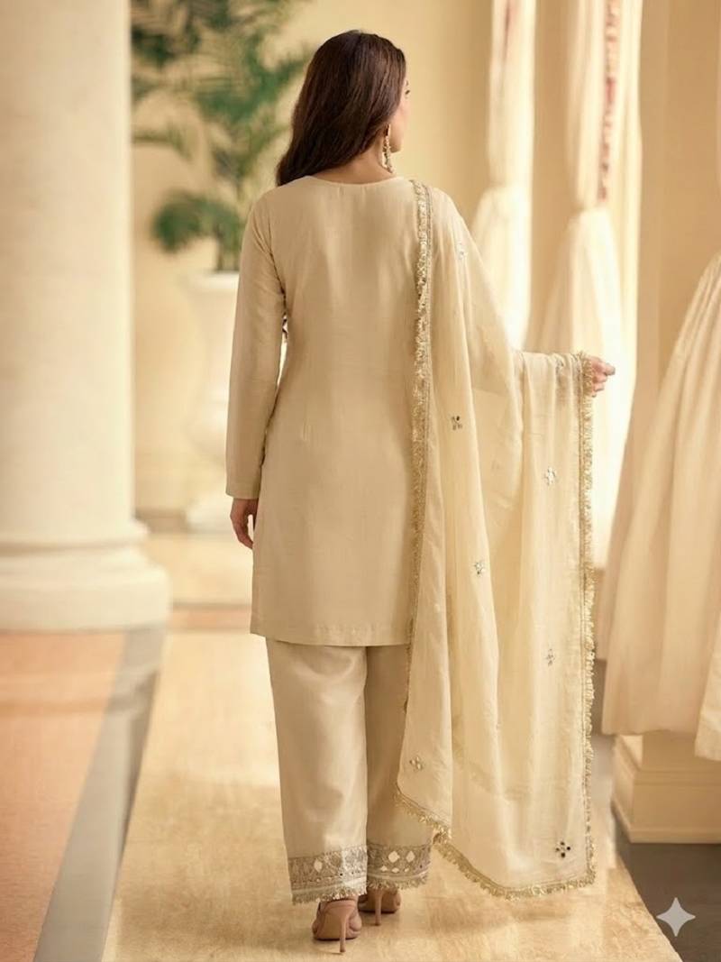 | • | Dupatta | : | Color- Cream / Fabric- Silk Blend |