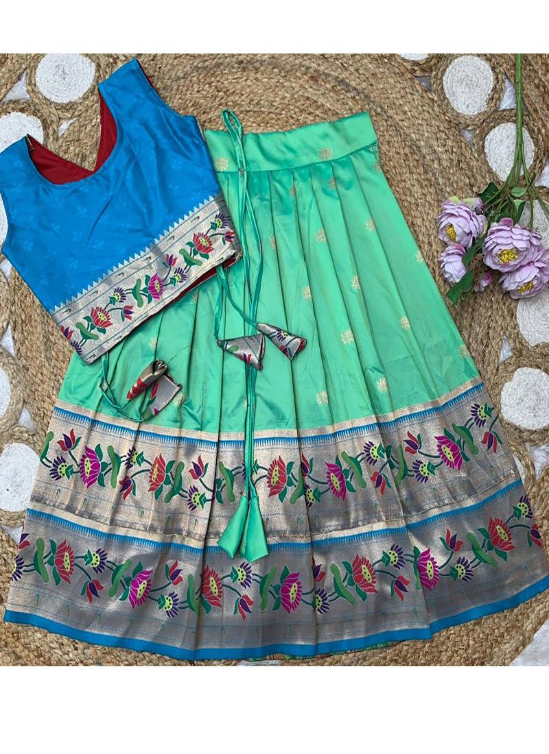 Green paithani pattu pavadai for girls ethnic wear