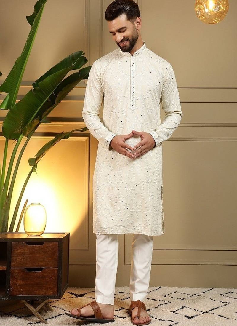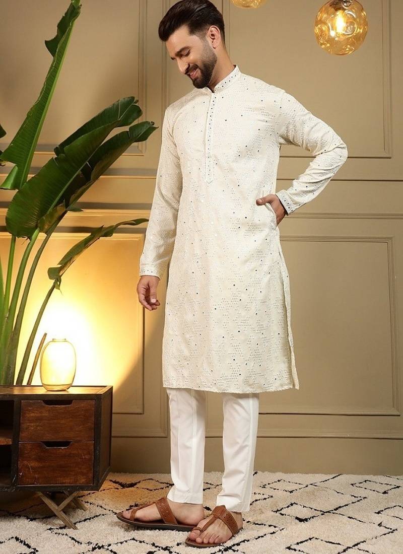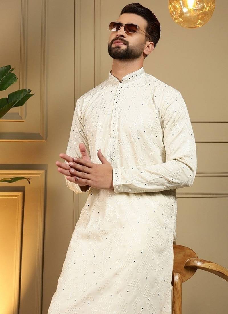 | Product Name | Designer Khadi Cotton Embroidered Mirror Work Wedding Kurta Payjama | |