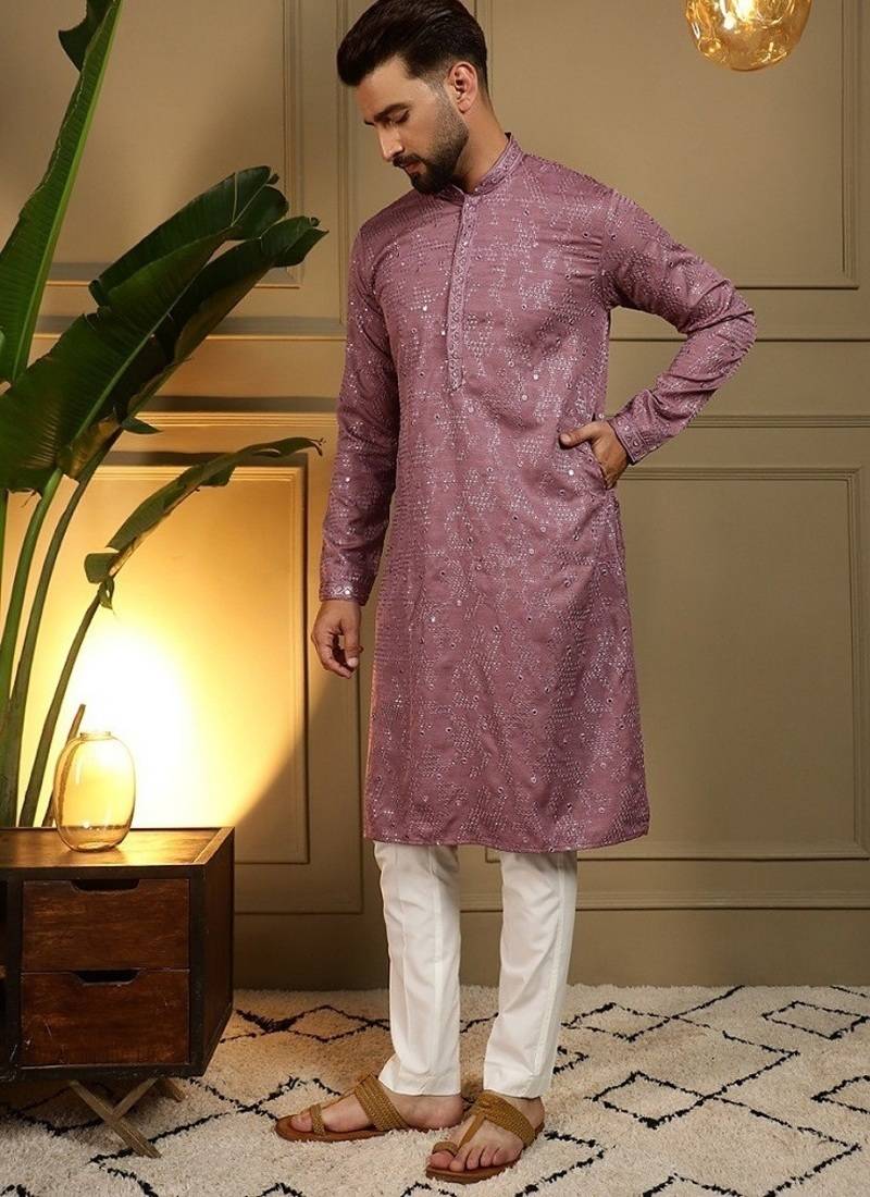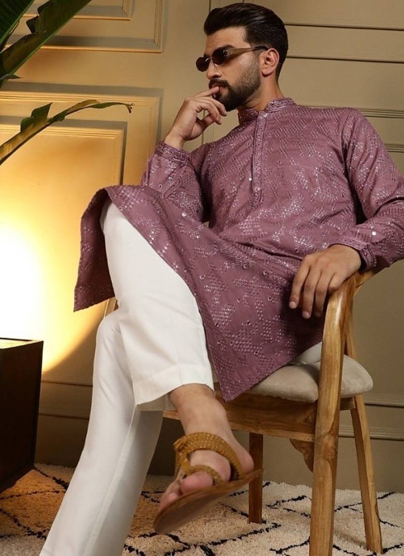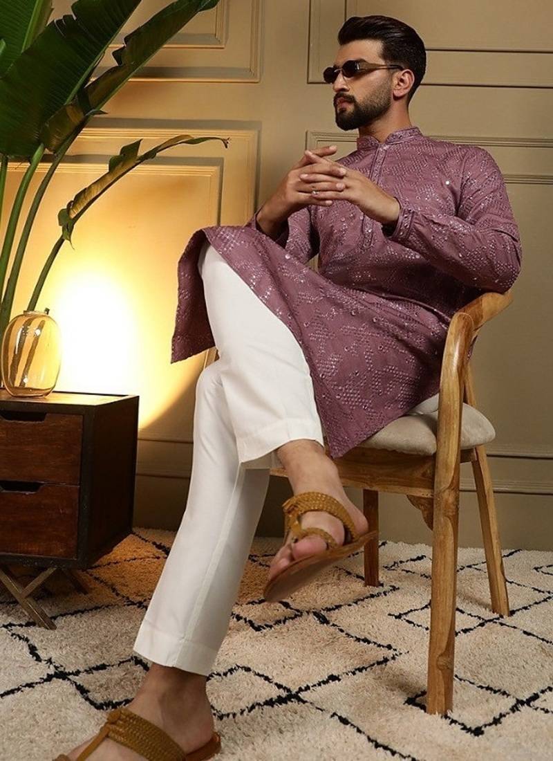 | Product Description | Step Into Effortless Elegance With This Sophisticated Mauve Kurta Set, Designed For Festive Occasions And Traditional Gatherings. Crafted From Premium Heavy Khadi Cotton, The Kurta Offers A Perfect Blend Of Comfort And Style. The Kurta Features Intricate Embroidery Enhanced With Delicate Mirror Work, Adding A Subtle Shimmer That Elevates Its Ethnic Appeal. Designed With A Classic Mandarin Collar And A Straight Knee Length Silhouette, It Ensures A Refined And Modern Look. Paired With A Comfortable Semi Cotton Churidar, This Ensemble Provides Ease Of Movement While Maintaining A Polished Appearance. Ideal For Weddings, Festive Celebrations, And Cultural Events, This Kurta Set Is A Must Have Addition To Your Ethnic Wardrobe. |