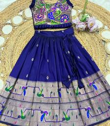 Navyblue soft silk paithani design pattu pavadai for girls ethnic wear