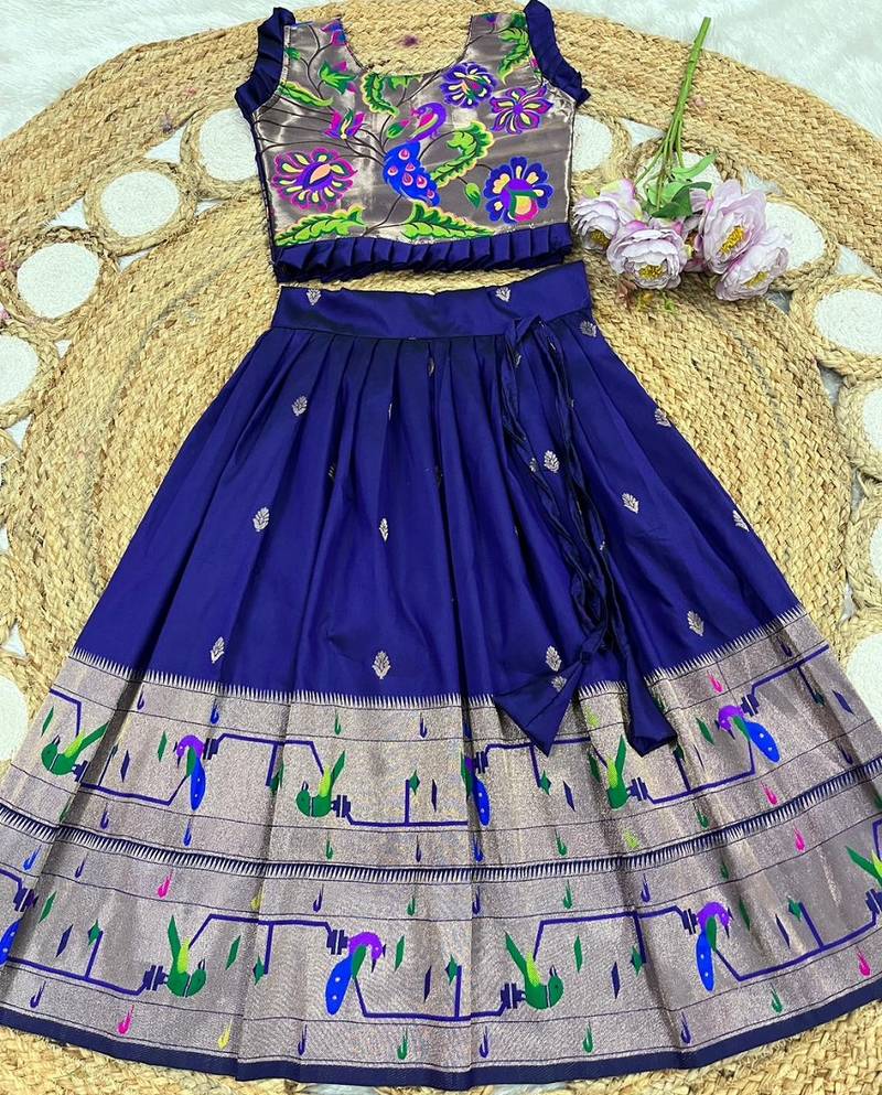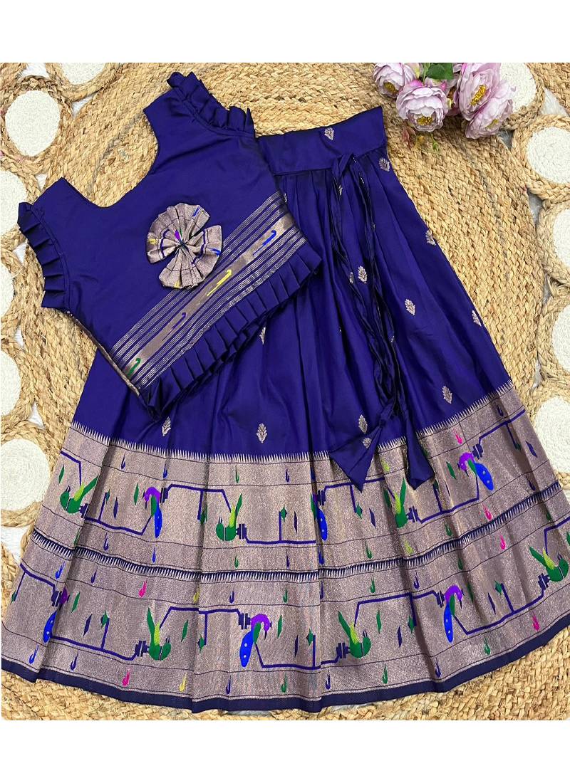 | Product Name | Navyblue Soft Silk Paithani Design Pattu Pavadai For Girls Ethnic Wear | |