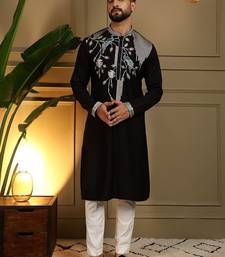 Mens designer viscose silk embroidered work kurta payjama wedding wear