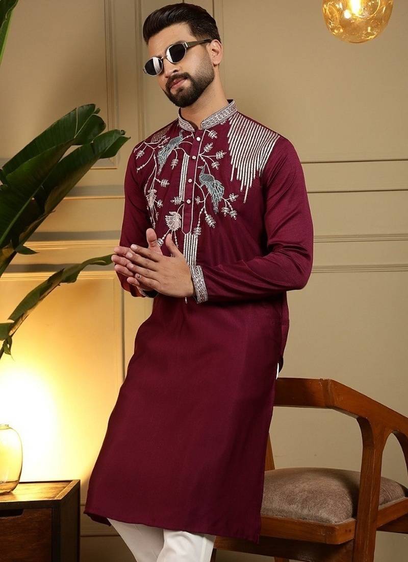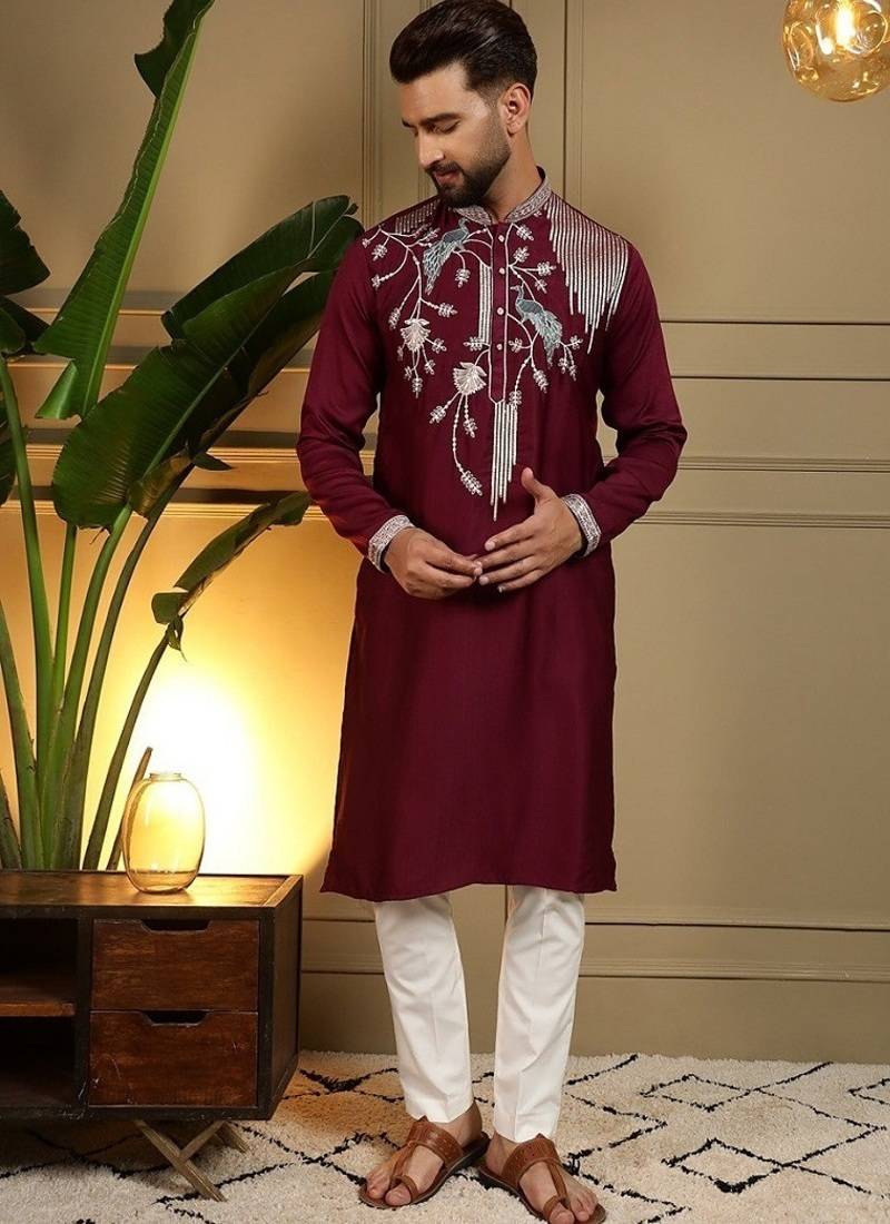 Mens designer viscose silk embroidered work kurta payjama wedding wear