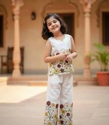 Offwhite soft kora cotton thread embroidered work co-ord set
